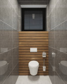 Na prízemí je predsieň, chodba, kúpeľňa so závesným WC a umývadlom, kúpeľňa so sprchovacím kútom, kumbál, veľká a priestranná obývacia izba s kozubom, kuchyňa. Z druhej strany obývacej izby je vstup na terasu a do záhrady.