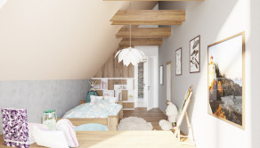 Na poschodí sú tri izby, chodba, kúpeľňa s vaňou, umývadlom a WC, 2- izby sú orientovné do záhrady s prekrasným výhľadom na Vysoké Tatry. Z 3-tej izby orientovanej do dvora je východ na balkón.